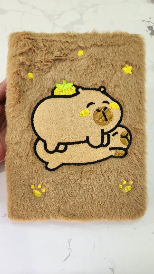 Cuaderno Peludo con stitch Bordado . Hojas rayadas blancas