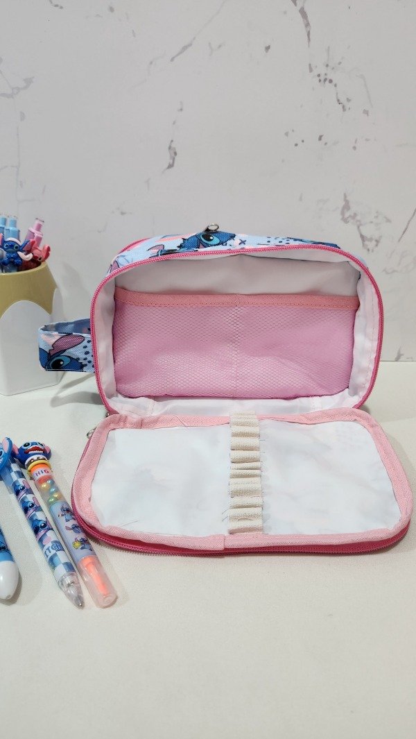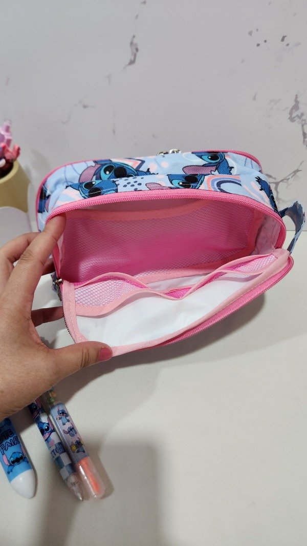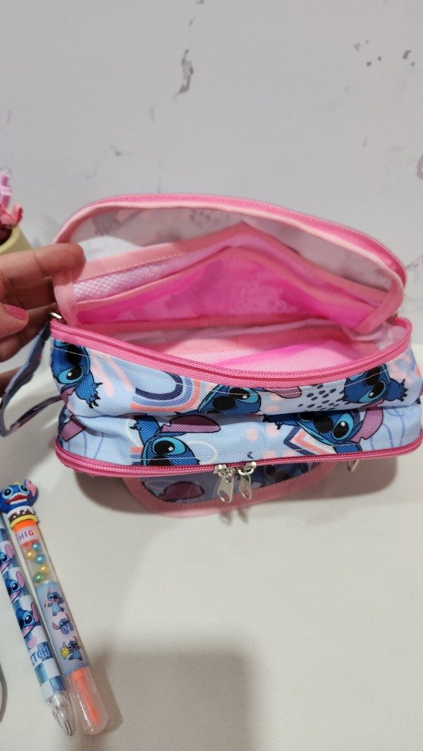 cuenta con muchos compartimentos es super amplia tiene elástico para poner lapices . Es muy útil para las que tienen que llevar muchos útiles. Especial para maestras , maestras jardineras o las que estudian para maestra.