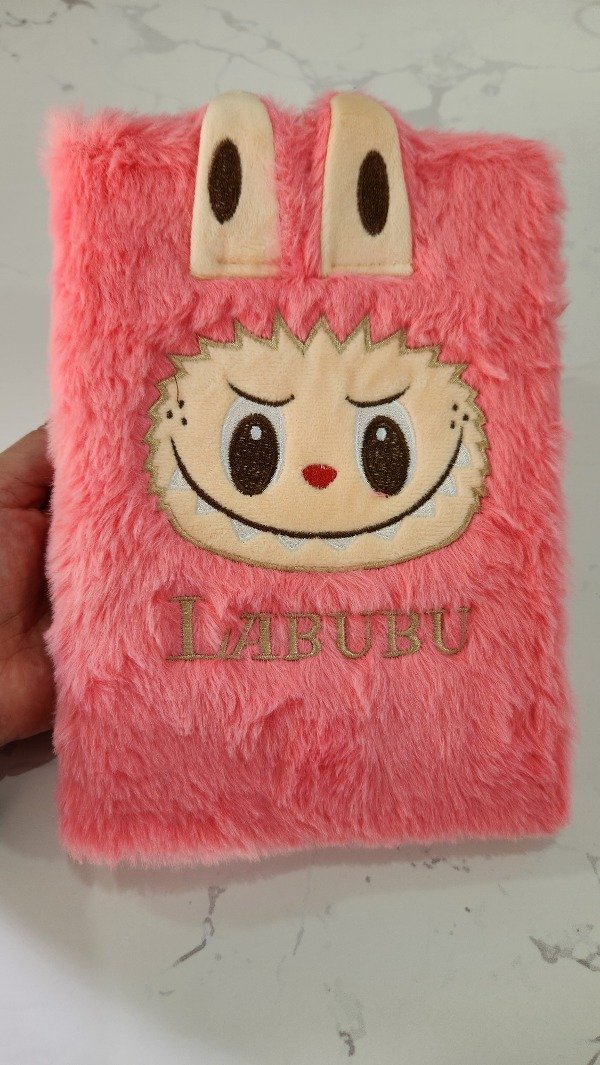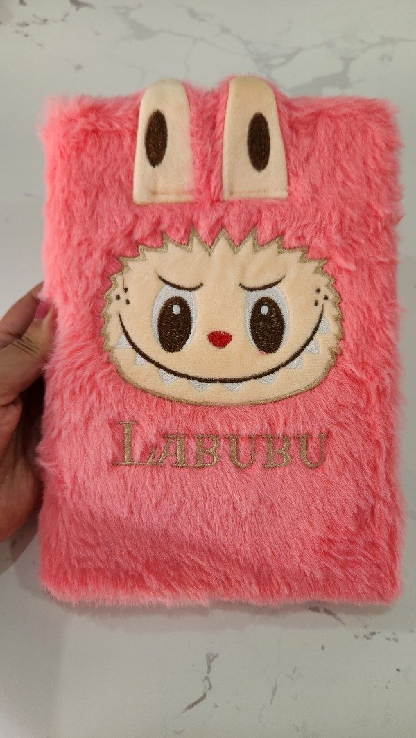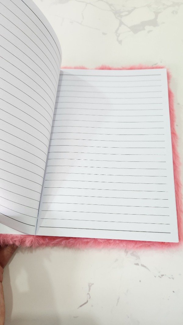 Cuaderno Peludo con stitch Bordado . Hojas rayadas blancas