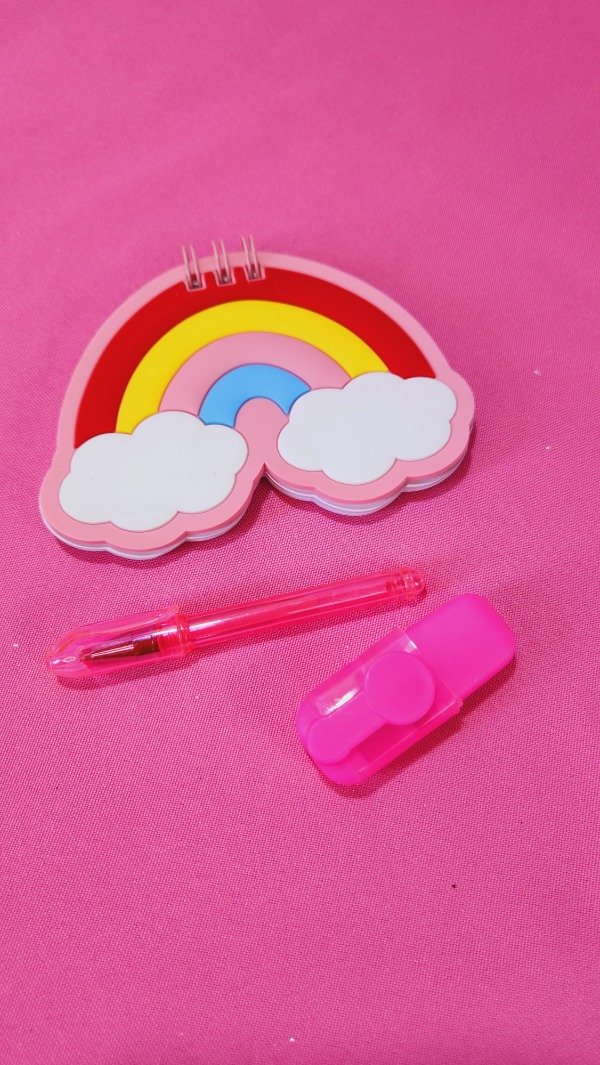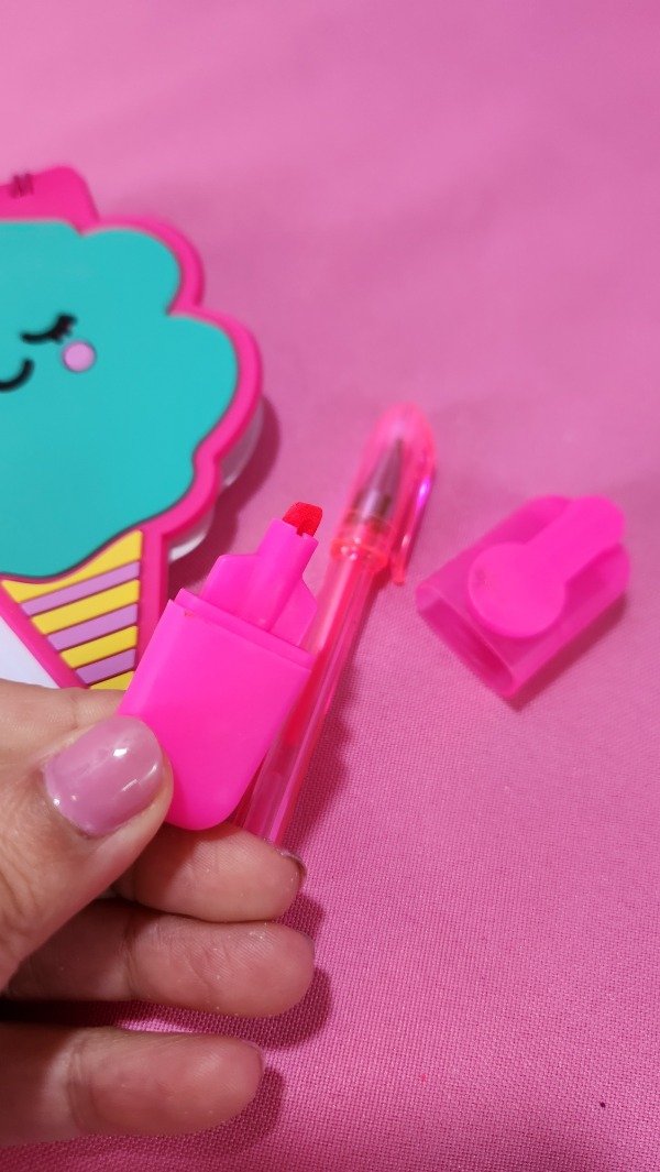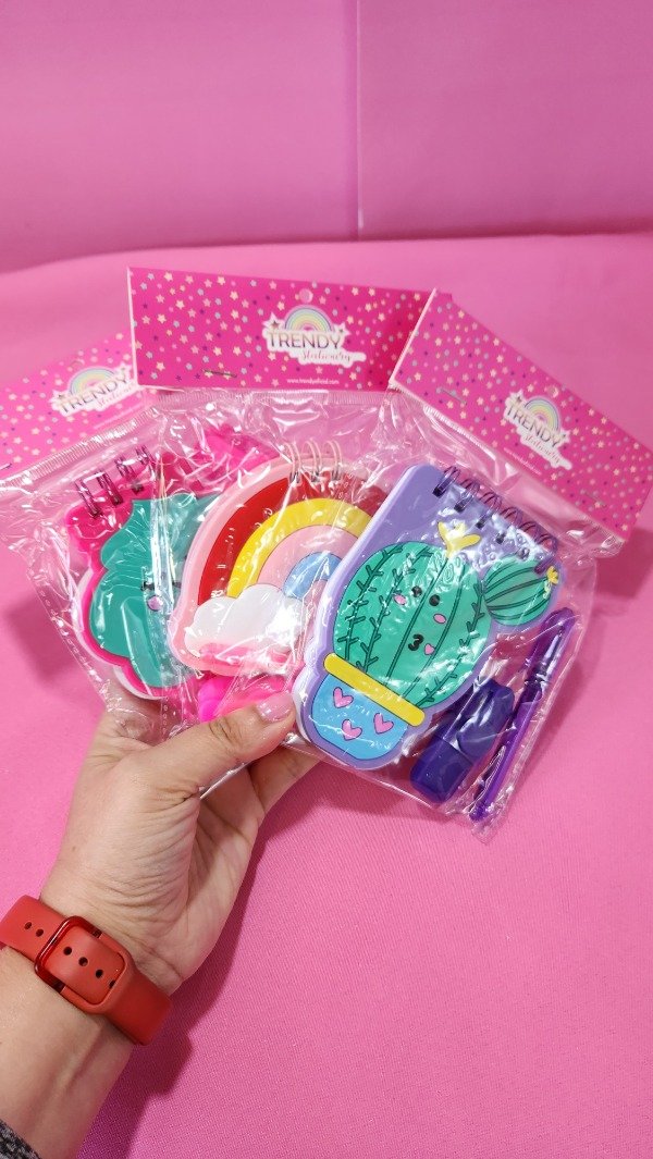 Libreta con forma hojas lisas tapas de silicona + lapicera + resaltador