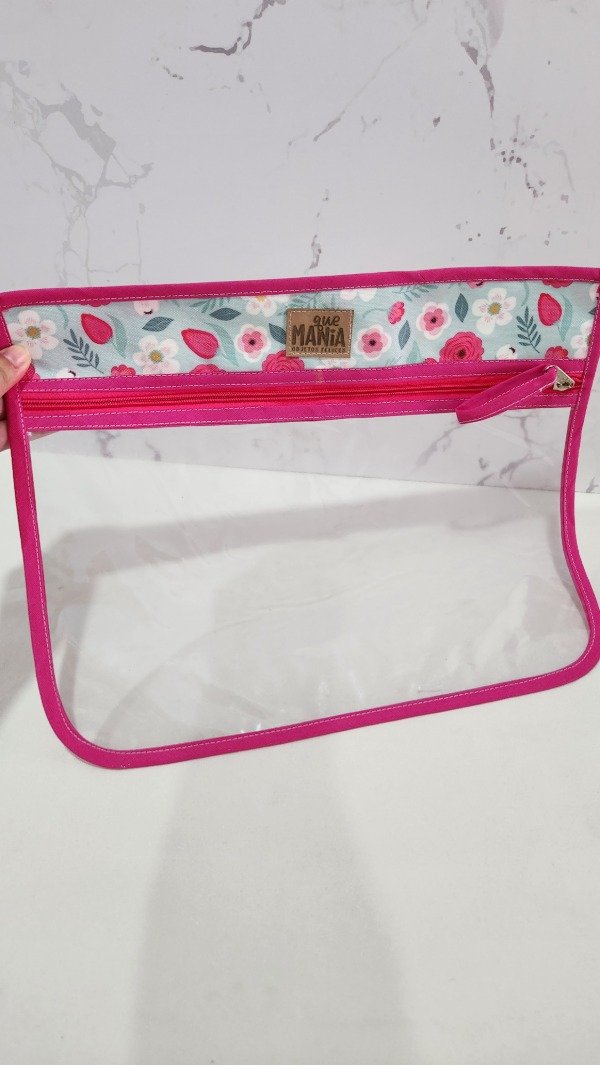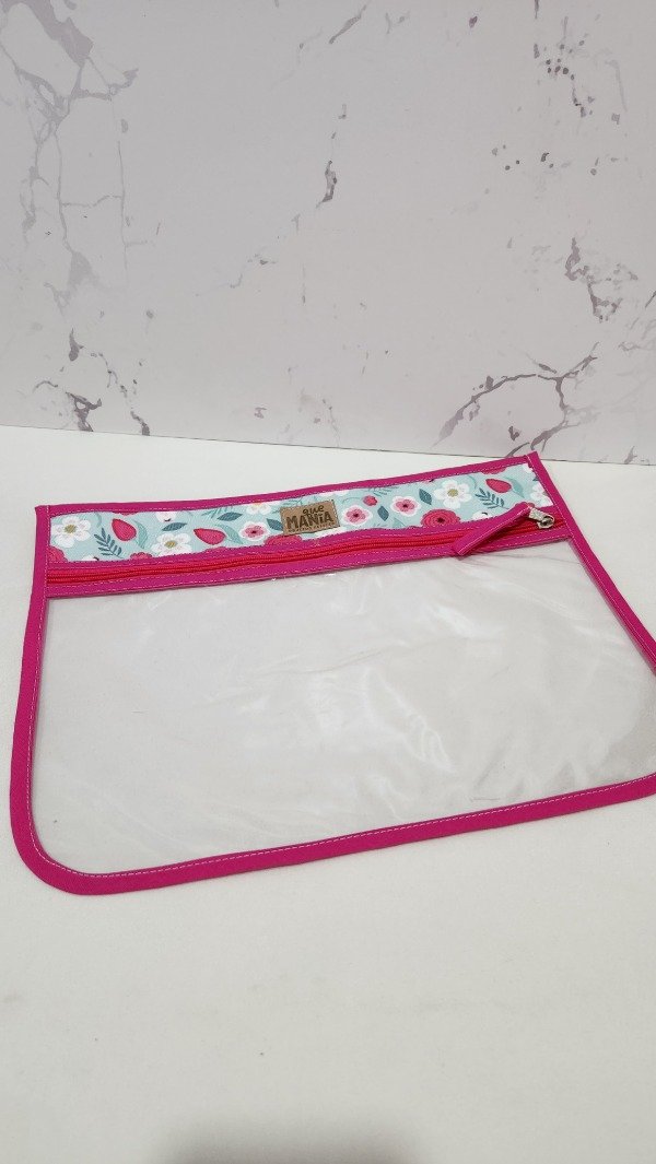 Sobre transparente cristal combinado con cordura estampada . Tiene abrojo para cerrarlo . Podes guardar lo que quieras . Papeles importantes . Apuntes . Cuadernos . Son super practicos .