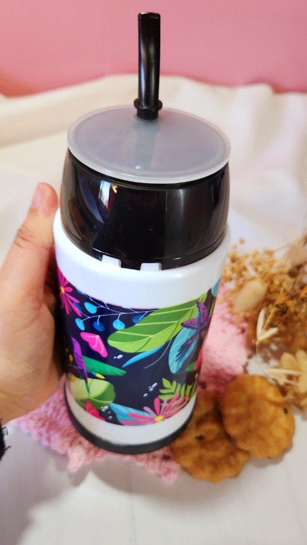 Mate listo de polímero. Sublimado . Ideal para tomarse unos ricos matesitos mientras estás trabajando. Abajo pones el agua caliente y arriba armas el mate . Chupas y listo . También llamado chapa y pase. Te puede durar hasta 2 hs como max el agua caliente .