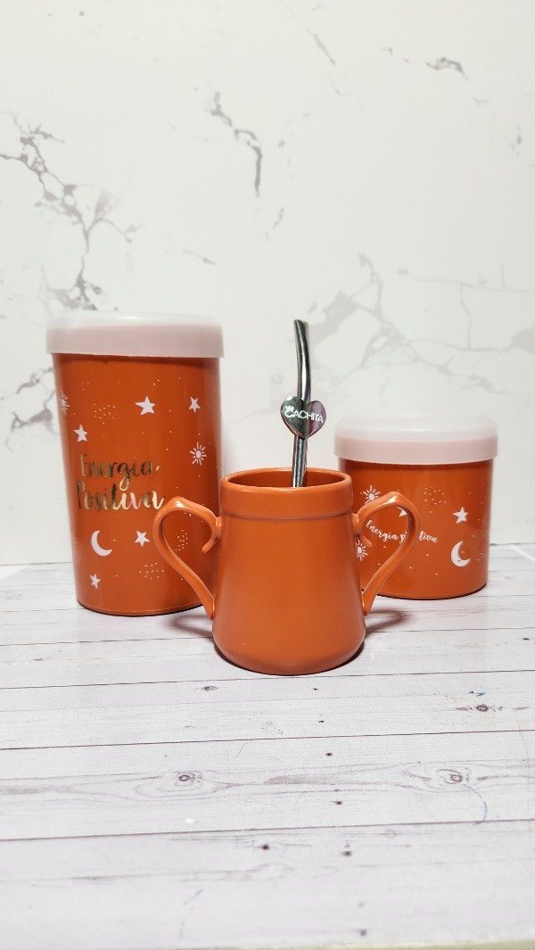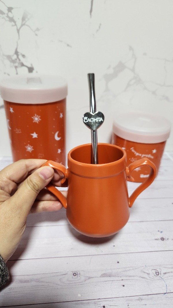 Set de latas plásticas + Mate + bombilla